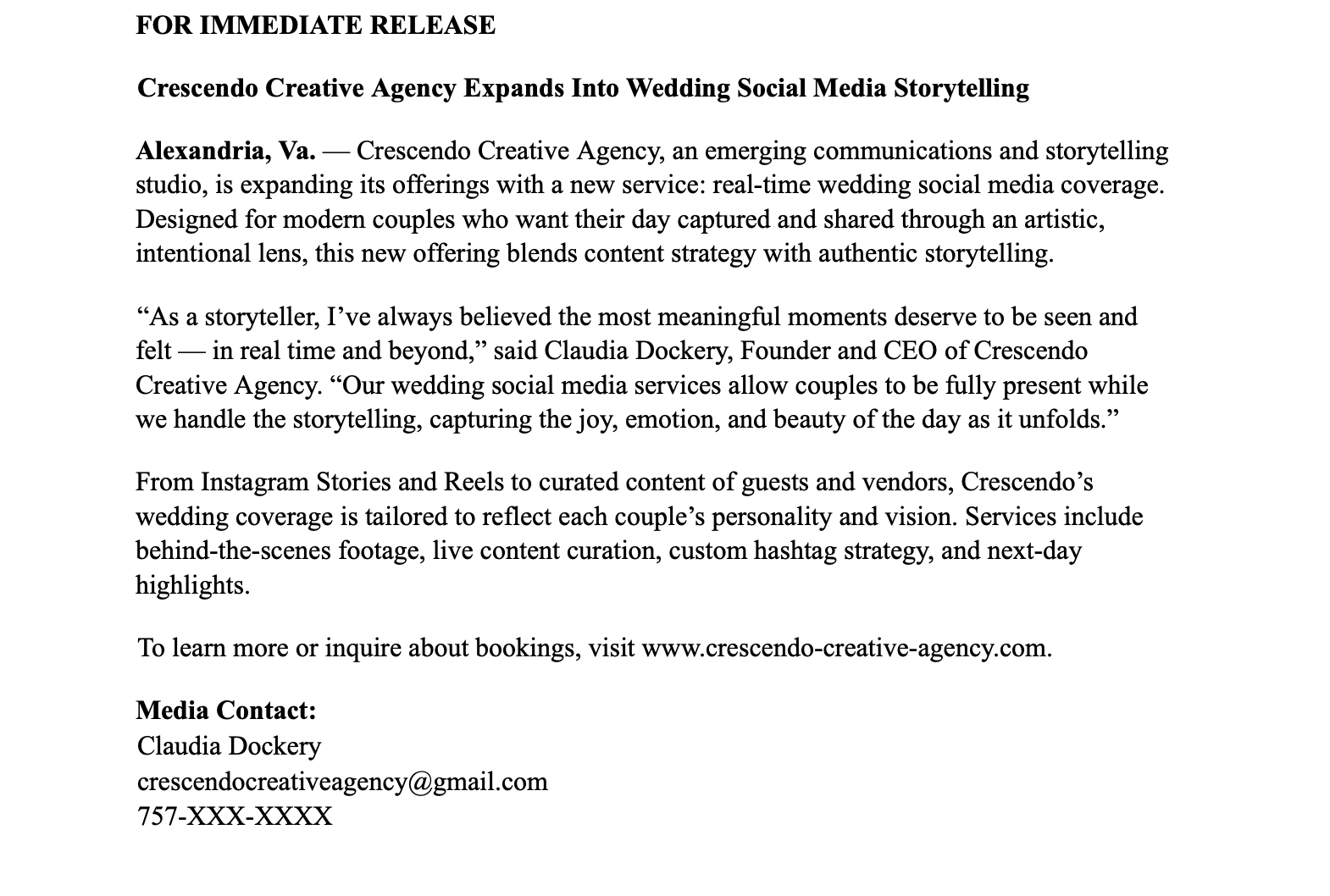 A selection of professional writing samples, including an internal communication memo and a press release, highlighting my range across strategic messaging and external-facing content. Click the links below to view each piece.